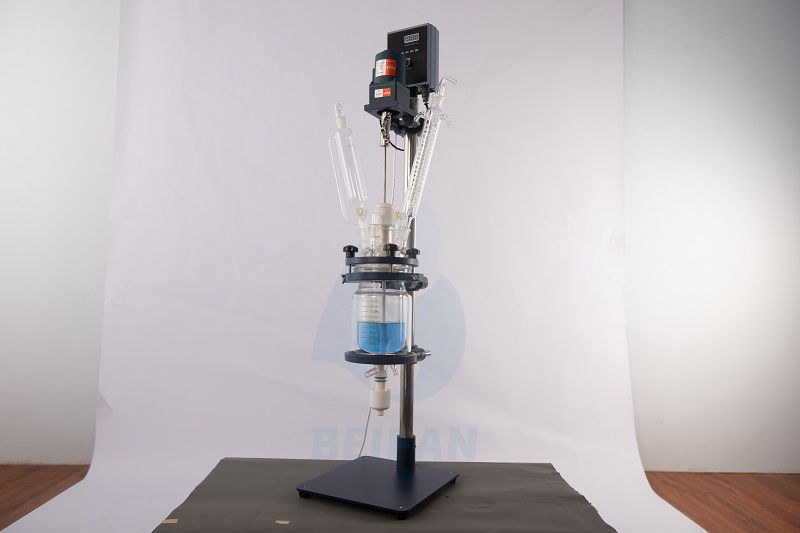 The adjustable speed glass reactor is mainly used for the synthesis reaction, distillation and concentration of different types of materials. We have a single wall, double glass reactor. According to some experimental requirements, the reactor can be pumped to a negative pressure state. A constant pressure funnel or regulating valve on the feed bottle allows you to add material to the container at a uniform and controlled rate. The condenser helps to recover some of the substances distilled during the reaction. The circulating liquid can be filled into the jacket to heat or cool the material inside.